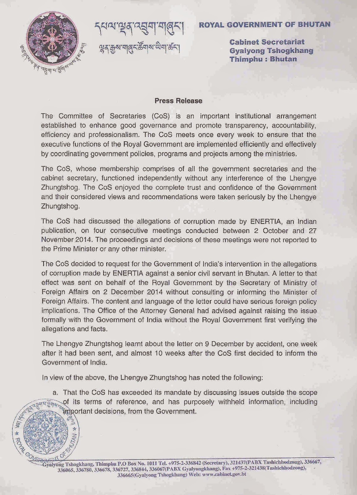 Cabinet Secretariat Bhutan Page 5 Thesecretconsul Com